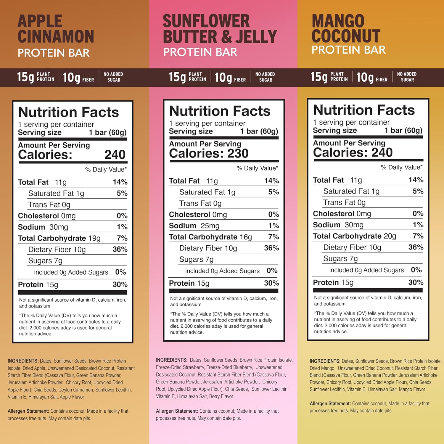 Each bar delivers 15g of plant-based protein in a nut-free, gluten-free, and dairy-free recipe. With no added sugar and high fiber content, these clean and tasty bars make a healthy snack choice for both kids and adults.